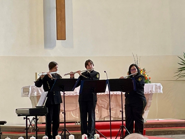 Fast zur gleichen Zeit war unser Querflöten-Trio Sara Bernhard, Lena Köberl und Gabi Permoser, sowie Ines und Ruth Köberl (Klarinette u. Saxophon) beim Frühlingskonzert in der Pfarrkirche Traisen im Einsatz.