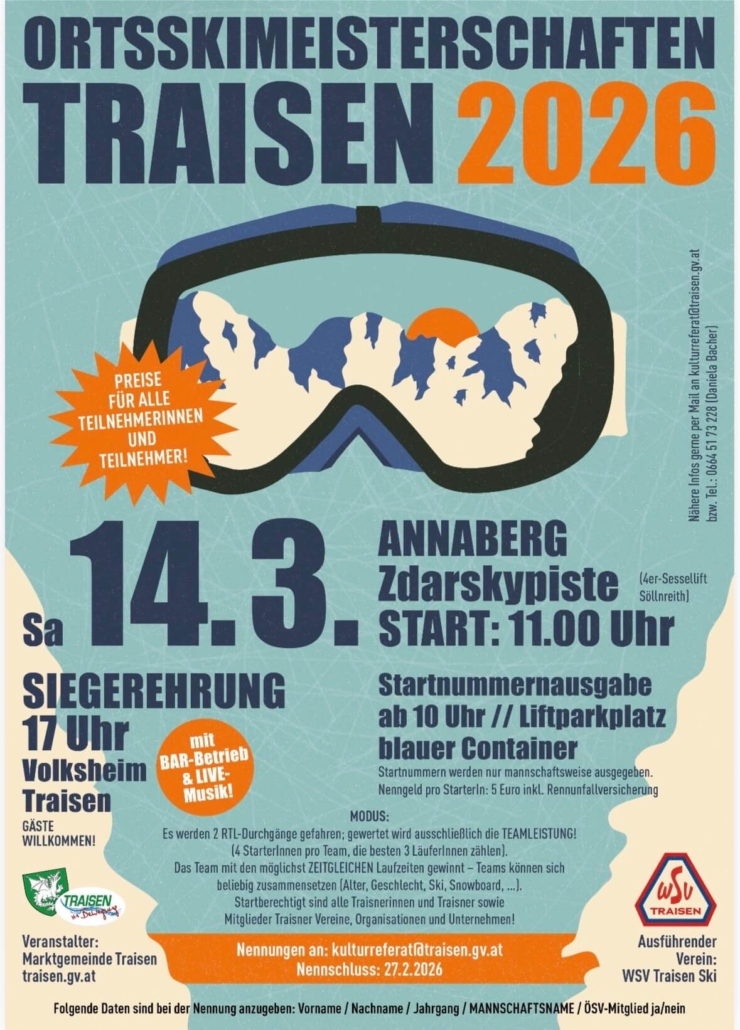 Am Samstag, 14.3.2026 gingen in Annaberg die Traisner Ortsskimeisterschaften über die Bühne. Auch ein Team der Werkskapelle war mit dabei.